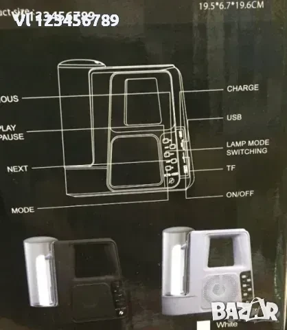 Функции: USB / TF карта / FM радио / BLUETOOTH / MIC високоговорител/ фенер