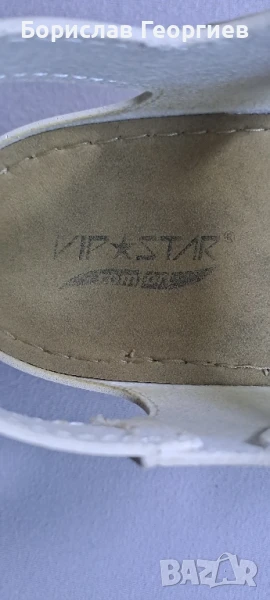 Сандали в цвят много светло бежово. Размер 40. Дължина на стелката 26 см. Височина на тока 4,50 см, височина на подметката отпред 2,00 см. Подходящи са за по-пухкаво краче! Носени са само веднъж. Дъщеря ми не хареса цвета!