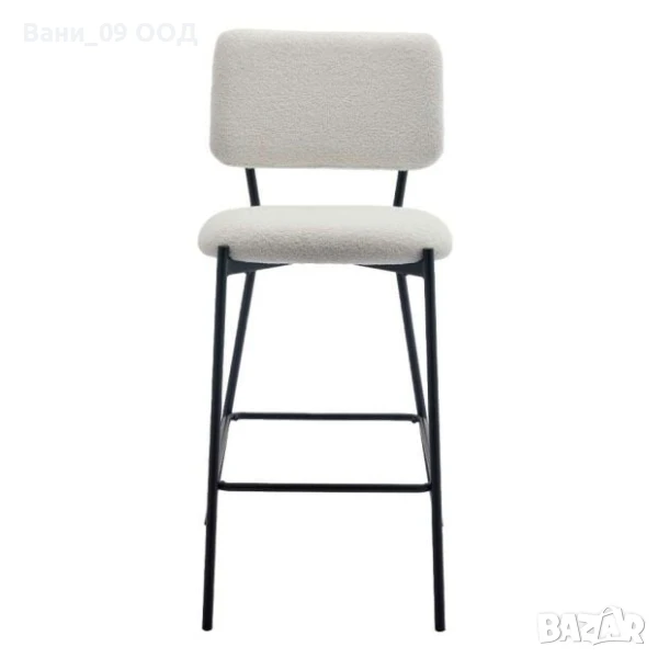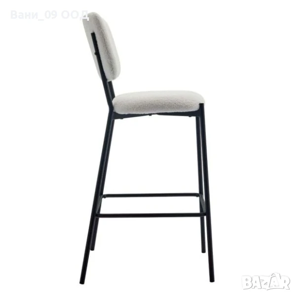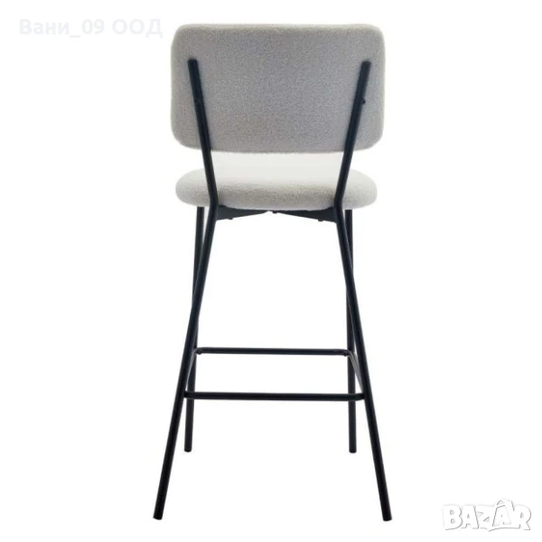 Бар стол в бяла текстилна дамаска с облегалка, размери: 64/75/81 см