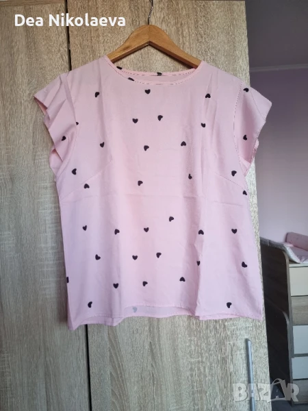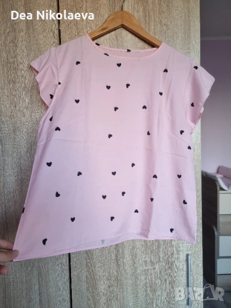 Красив топ в нежно розово на сърчица. Къдрав ръкав.