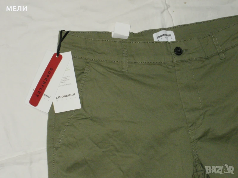Панталоните са на LINDBERGH, оригинални нови с етикети. Цената в магазина е 40 евро. По номер са L, сравнете мерките. Цвета е като на снимките. Материята е тънък плат от 97%-памук и 3%-еластан, доста са еластични. Отпред са с цип и копче, странични джобове. Отзад два джоба с копчета.
