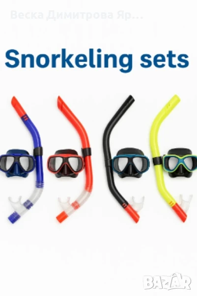 Тип продукт: Комплект за гмуркане с маска и шнорхел;Открийте лятното удоволствие с нашия универсален комплект за гмуркане, включващ висококачествена маска и шнорхел. Подходящ за начинаещи и напреднали.Комплект 2 в 1: включва маска и шнорхел;Удобна анатомична форма: мек силиконов мундщук и регулируема каишка;Широко зрително поле: маска с двойна прозрачна леща;Лек и издръжлив: изработен от качествени PVC и силиконови материали;Подходящ за деца и възрастни (универсален размер); Син комплект – Син шнорхел с червена накрайка, маска с черен корпус и син кант; Червен комплект – Червен шнорхел с черна маска, червени детайли; Черен комплект – Изцяло черен шнорхел и маска с червен връх за видимост; Жълт комплект – Жълт шнорхел, маска със зелен кант и сини елементи.