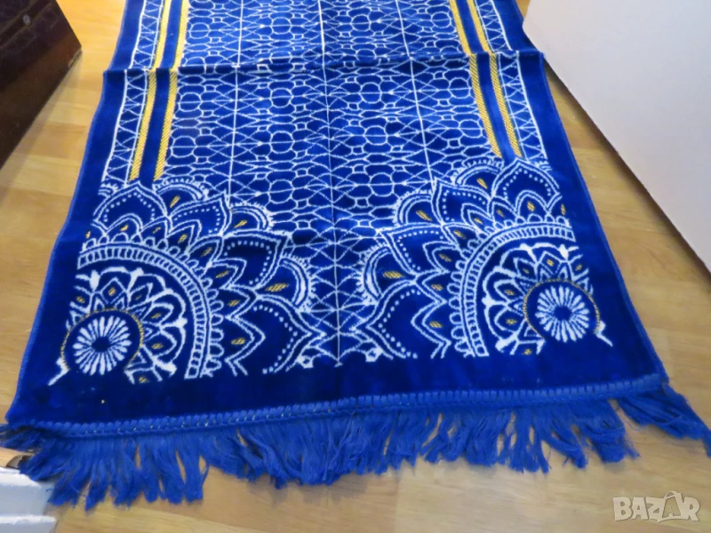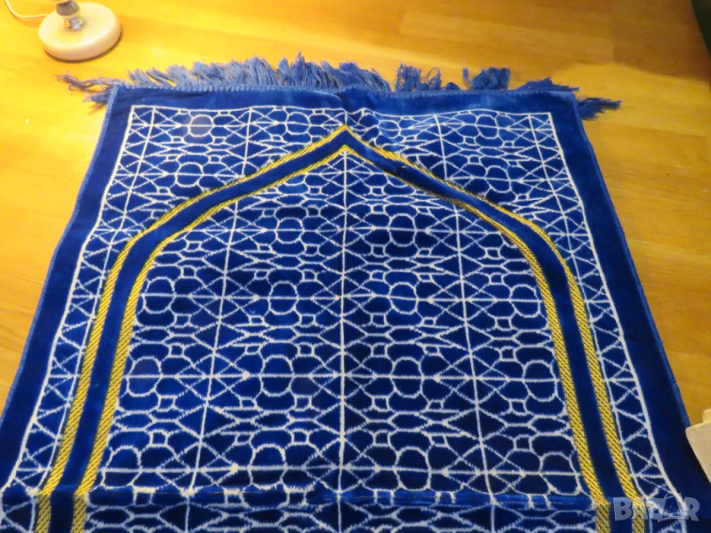 молитвено килимче - яркосин фон с красиви златни флорални мотиви - направете вашета молитва и смирение пред Бога.