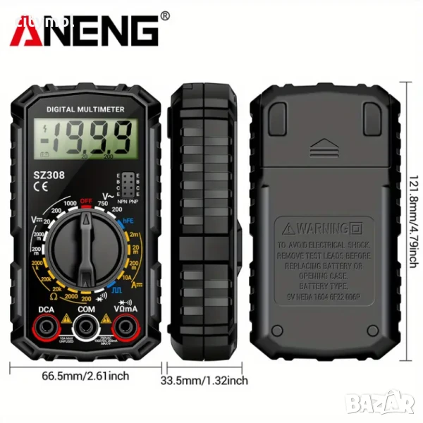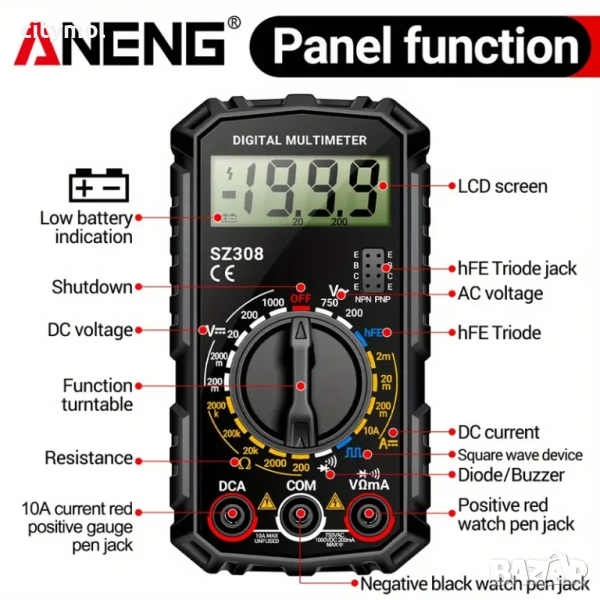 ✔ Многофункционална функционалност: Може да измерва AC/DC напрежение, DC ток, съпротивление, диоди, аудио сигнал, квадратни вълни и hFE за транзистори, отговаряйки на изискванията на най-сложните електрически тестове.