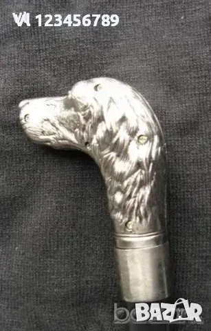 Ръкохватка - глава на хрътка, двуделен модел, с размери около 80 х 80 х 30 мм, изработен от сплав на цветни метали - великолепна имитация на патинирана блонзова отливка. Фин детайл, великолепно качество.