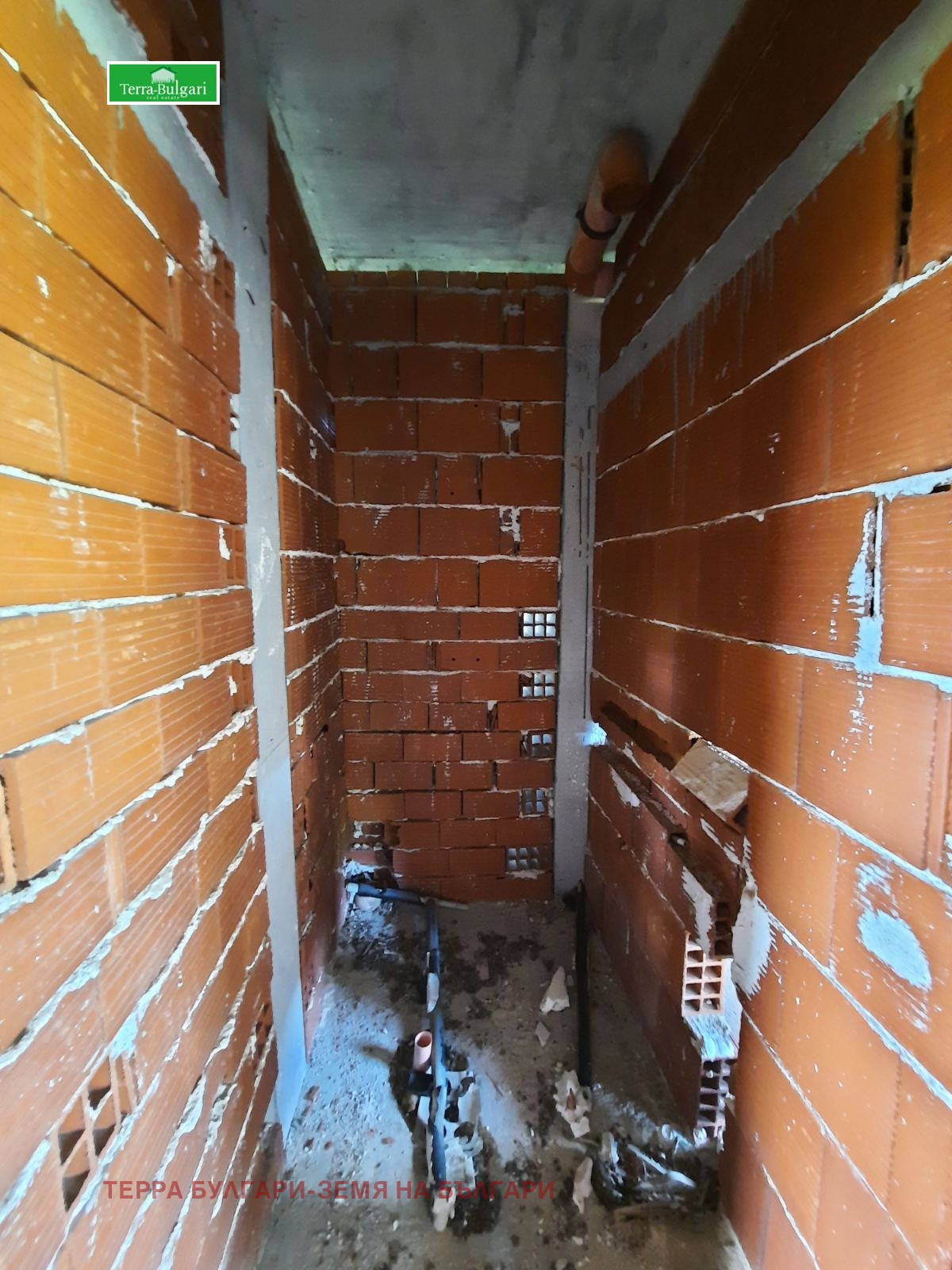 Всяка от къщите е с кострукция тухла/плоча, покрив бетон и разполага с