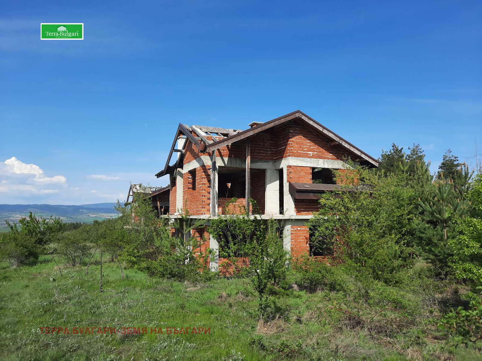 Агенция за недвижими имоти Тера Булгари - Земя на Българи предлага на вашето внимание инвестиционен проект с изградени девет самостоятелни къщи на груб строеж, заедно с петнадесет самостоятелни парцела.