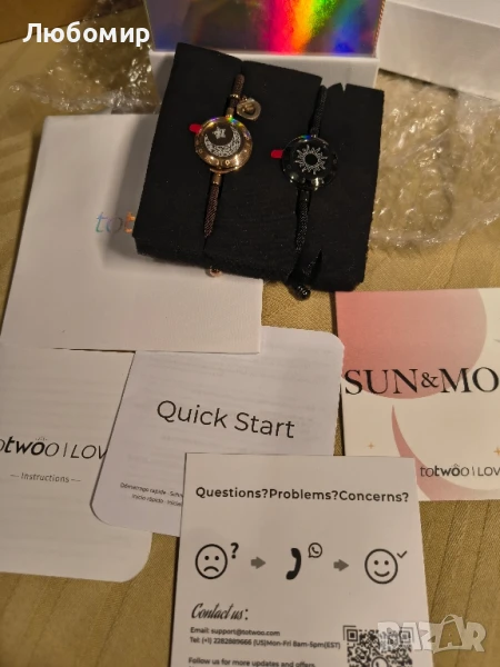 Всяко докосване е послание за любов. Докоснете гривната си и другата ще вибрира и ще светне, уведомявайки любимия човек, че мислите за него.Персонализирайте вашите гривни Totwoo: Персонализирайте съобщенията със светкавица и вибрация