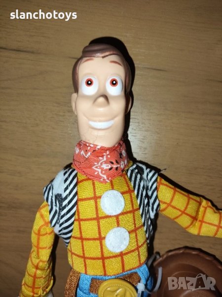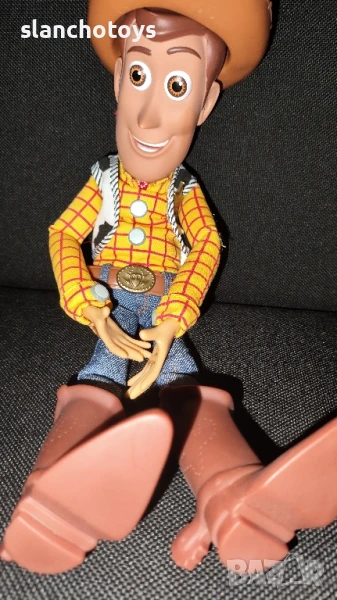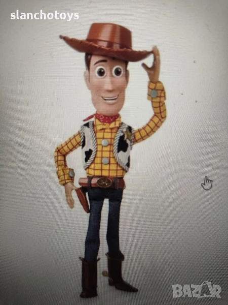 Уди Шерифа и Джеси Овчарката. Говорещи, чрез издърпване на механизъм, намиращ се на гърба. Всяка на цена от 84,90лв. Размер 40см, говорящи. Цената е за 1бр.Има го и около 45см,с малка шапка, не говорещ-59лв. Имам и коня му Булзай / Булзай (на Bullseye).-25лв. 🐴Значка на Уди Шерифа,7см-12лв.Слинки голям 49.90, Слинки малък,14см.-5,90€. Виличко Форки-25лв. Баз Робота, с крила-49.90лв. Изпращам с Еконт или лично за Сф.