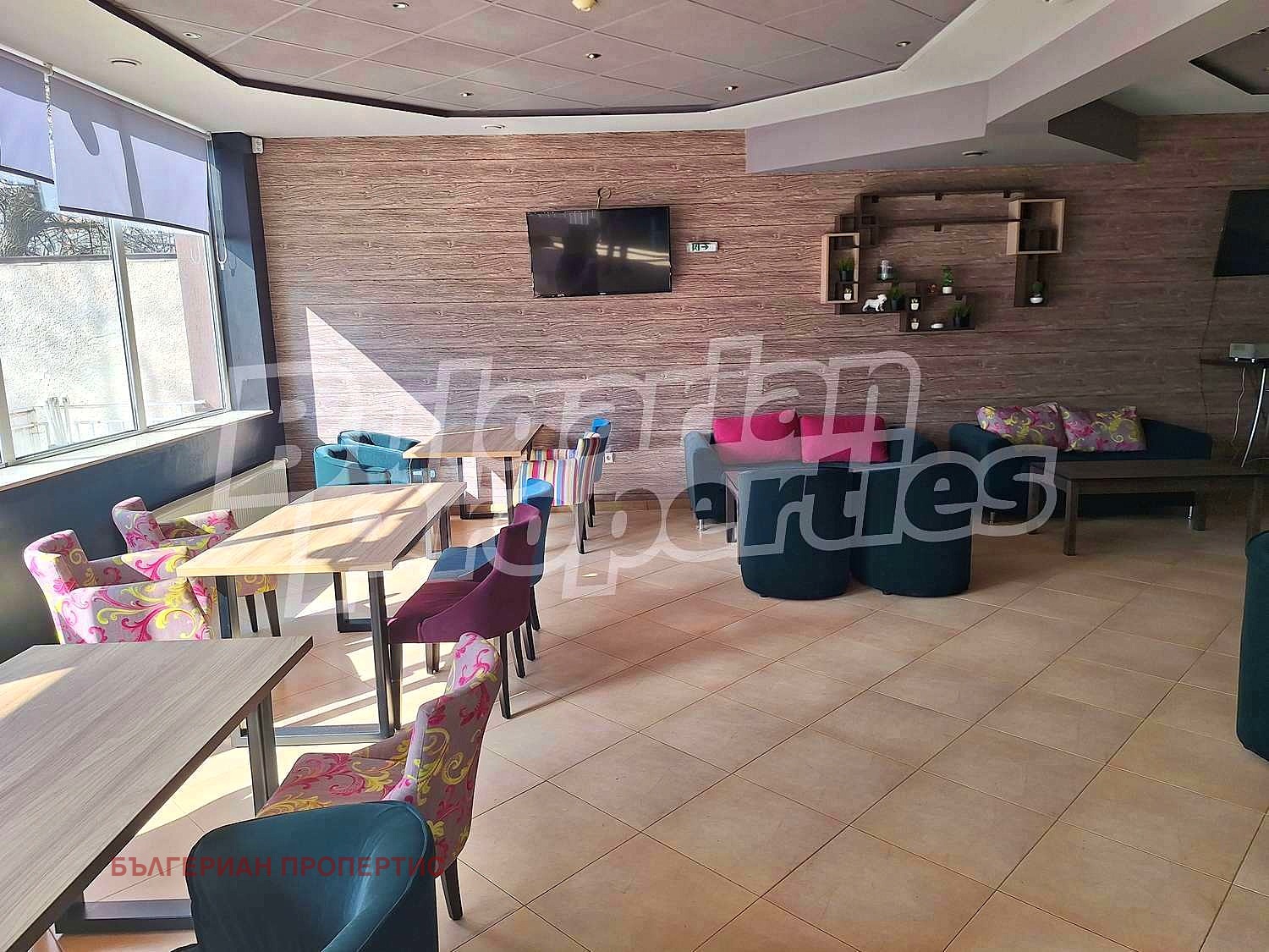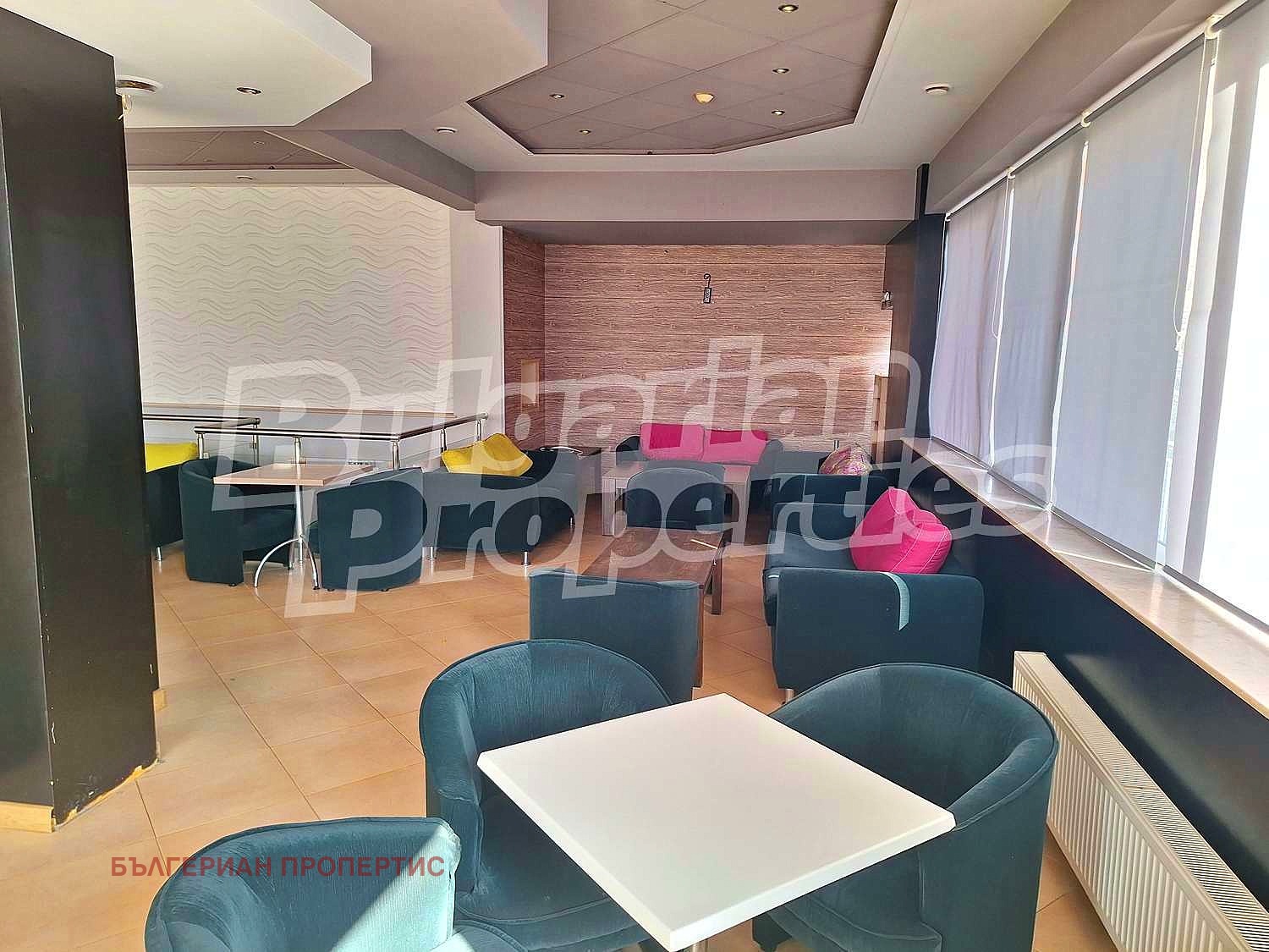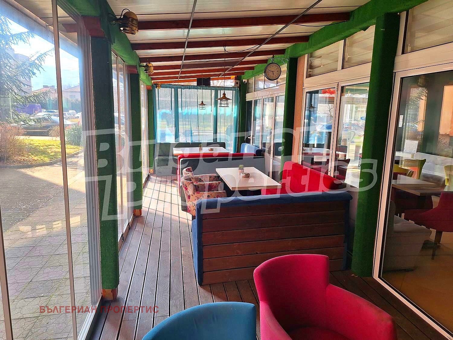В момента има заведение на два етажа с обособена външна зона и отделен хранителен магазин. Сградата е основно ремонтирана. Има помещения за склад и към двата работещи бизнеса. Към заведението има и кухня. Терасата има възможност също да се използва по усмотрение на новите собственици.