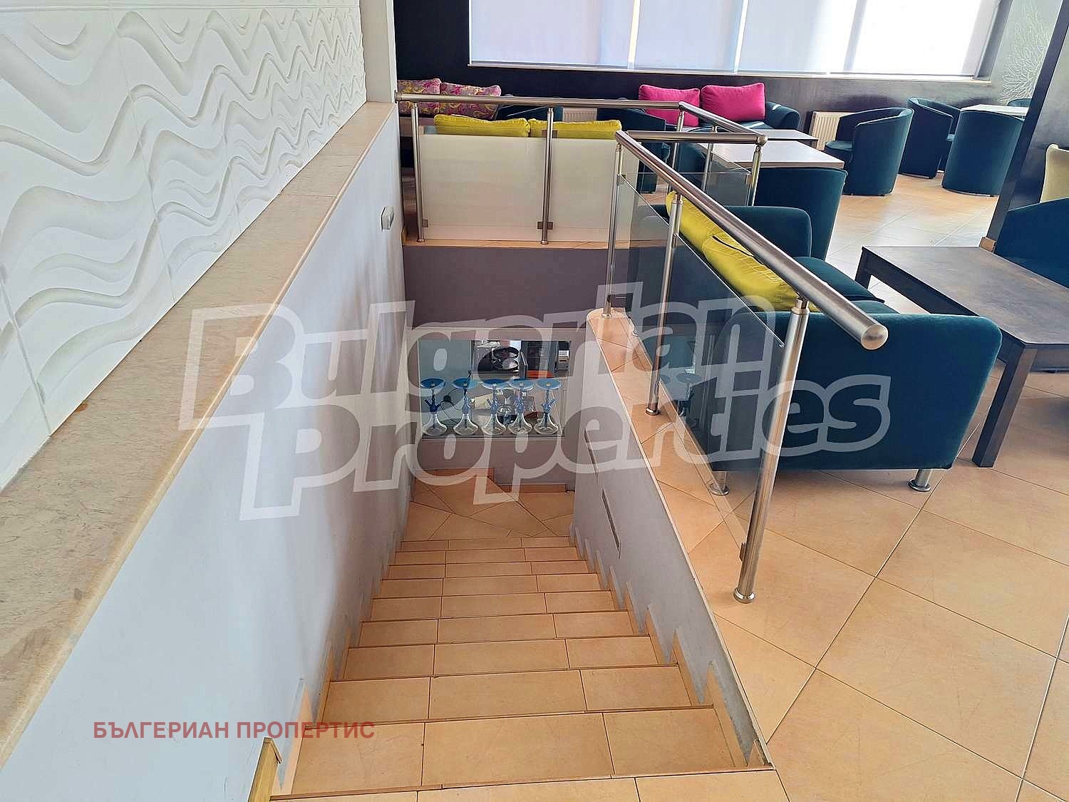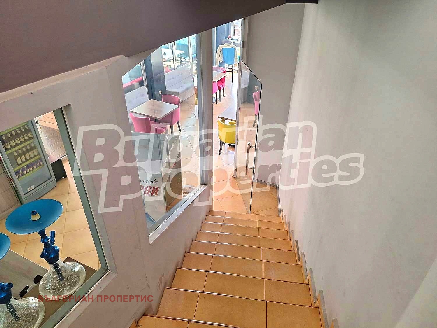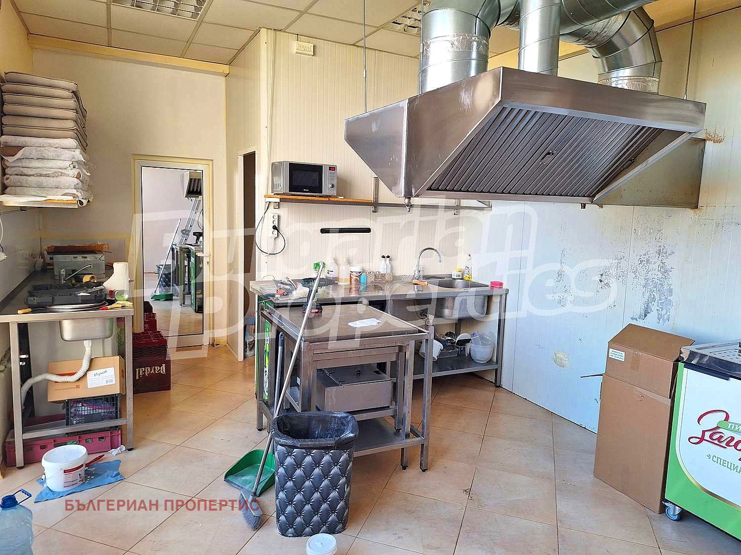 В момента има заведение на два етажа с обособена външна зона и отделен хранителен магазин. Сградата е основно ремонтирана. Има помещения за склад и към двата работещи бизнеса. Към заведението има и кухня. Терасата има възможност също да се използва по усмотрение на новите собственици.