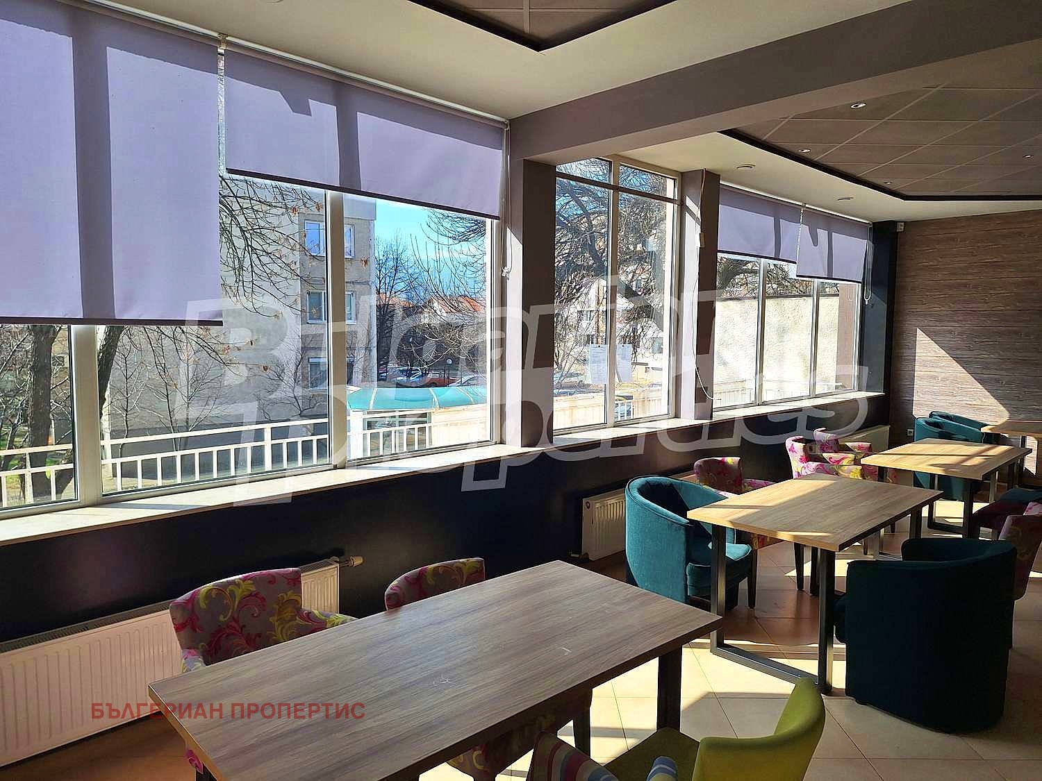 Разположен в града, този имот е в близост до основни удобства. На кратко пешеходно разстояние можете да намерите училище, супермаркет, аптека, спортна площадка, парк и паркинг. Това улеснява достъпа до имота както за служителите, така и за клиентите.