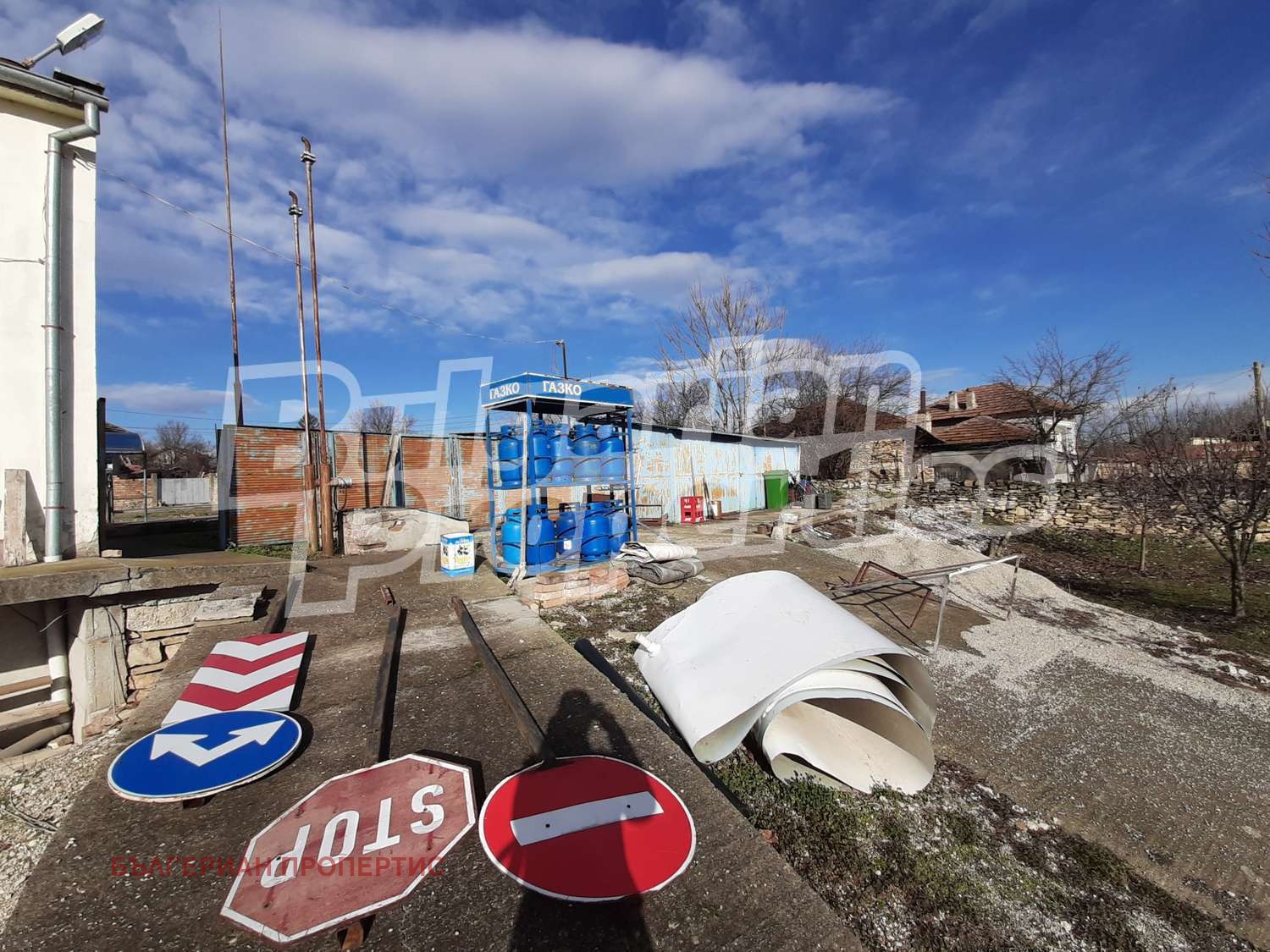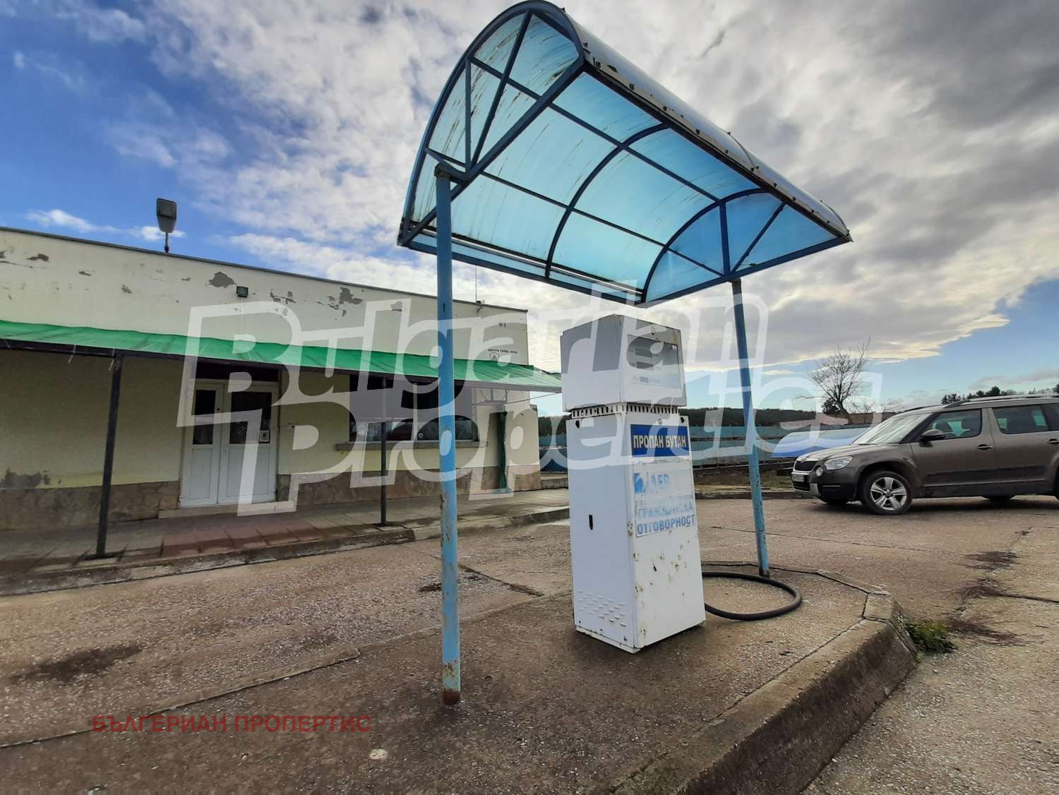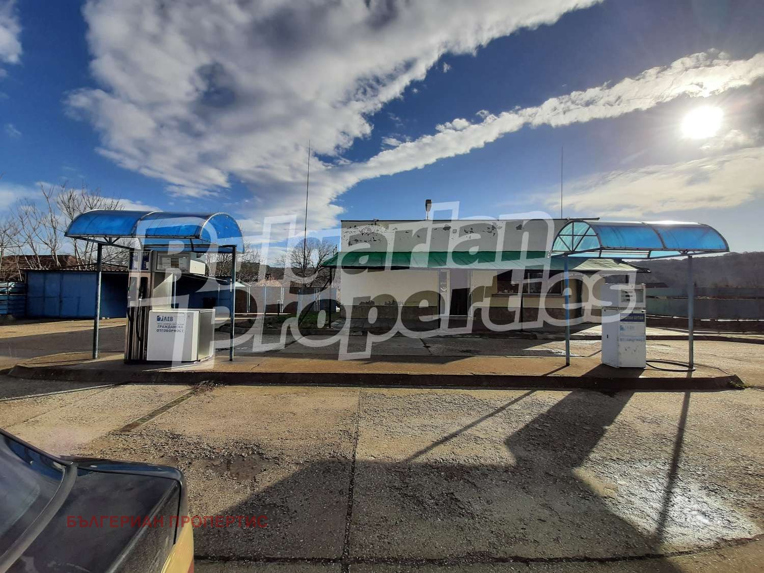 Имотът представлява 1423 кв.м. земя; търговска сграда/заведение със санитарен възел с разрешение за продажба на храна, алкохол и лиценз за тютюневи изделия с площ от 67 кв.м.; складови помещения; 2 колонки за зареждане, 4-тонна