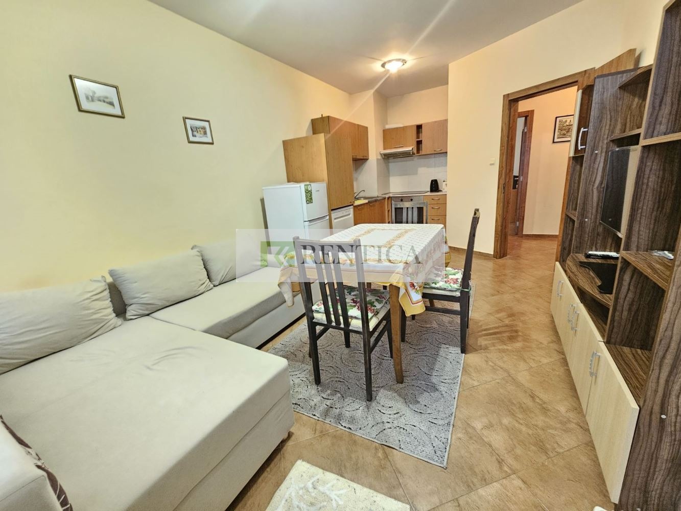 Rentica.bg Ви предлага обзаведен, нов двустаен апартамент под наем в квартал Бриз. Апартаментът се намира на първи етаж в новопостроена сграда /затворен комплекс/ с отлично поддържани общи части. Състои се от коридор; просторен и слънчев дневен тракт с кухненска част, оборудвана с необходимата за едно домакинство бяла техника в едно с трапезария; една спалня; баня оборудвана с душ-кабина и тераса. Жилището е свързано с всички необходими комуникации. Такса поддръжка на сградата е включена в цената. Отоплението е с климатик.