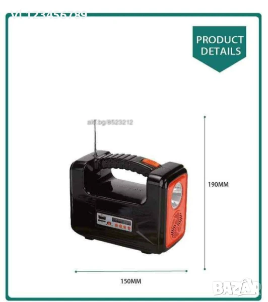 Dat AT-9011B е надежден комплект за слънчево осветление, който има 3 светодиодни крушки с ниска консумация и USB многоадаптерен кабел, който ви позволява да зареждате телефоните си от вътрешна 4V 9000OMah акумулаторна оловно-киселинна батерия. Батерията се зарежда от слънцето чрез малък 3-7w соларен панел, предоставен с комплекта. Този панел може да се постави на покрив, извън прозорец или навсякъде, където ще получи достатъчно светлина. Можете също да зареждате батерията през нормален електрически контакт (110-240v, 50/60hz). Устройството има индикатори за зареждане и състояние, за да ви покаже колко заряд остава и с каква скорост се зарежда. Пластмасовите (нечупливи) светодиодни лампи могат да бъдат свързани едновременно, осигурявайки достатъчно светлина за до три стаи. Всяка светлина може да се включва и изключва индивидуално. Основни характеристики: 3 x 3w led крушки 3.3W соларен панел и AC акумулаторен.