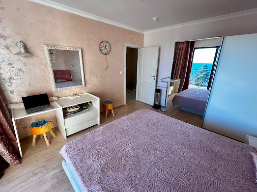 Предлагаме за продажба просторен и стилно обзаведен тристаен апартамент с прекрасна фронтална гледка към морето.Комплекс Валенсия Гардънс е разположен в тих и спокоен район, само на 100 м. от Южния плаж на Несебър. Апартаментът е с квадратура 114 кв.м. и се намира на пети жилищен етаж. Състои се от дневна с оборудван кухненски бокс и кът за хранене, зона за отдих, две спални, две бани с тоалетна - едната с вана, а другата с душ кабина, просторна тераса с невероятна фронтална гледка към морето. Апартаментът се продава напълно обзаведен и оборудван, готов за нанасяне. Комплексът е с отлично поддържана просторна озеленена територия, предлага басейн с детска секция и зона за отдих, пул бар, детска площадка, ресторант, фитнес зала, рецепция, подземен паркинг. Комплексът е с целогодишно управление - денонощна охрана, видеонаблюдение, почистване, техническа поддръжка, контролиран достъп.Тука е едно прекрасно място за почивка и семеен отдих, съчетаващо близостта до морето и тази до Стария Несебър. Районът е с добра инфраструктура, комуникации и удобен автобусен транспорт. Апартаментът е изключително подходящ за живеене и отдаване под наем целогодишно.
