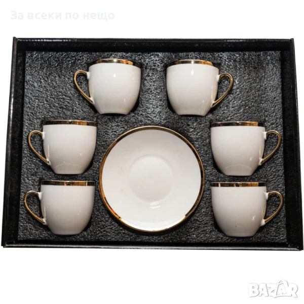 Комплект порцеланови чаши с чинийки – със златен кант Код P798