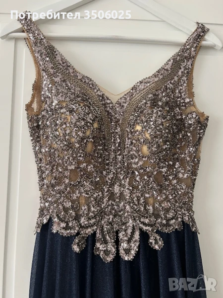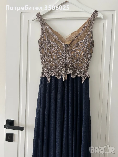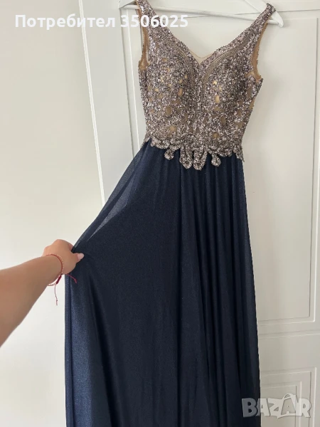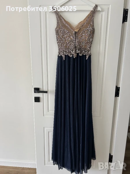 Продавам дълга официална рокля, използвана, в син цвят. Подходяща за специални поводи и събития. Стилна и елегантна, подчертаваща женската фигура. Позволява свобода на движения и комфорт през цялото време. Носена е само един път, почти като нова без никакви забележки.