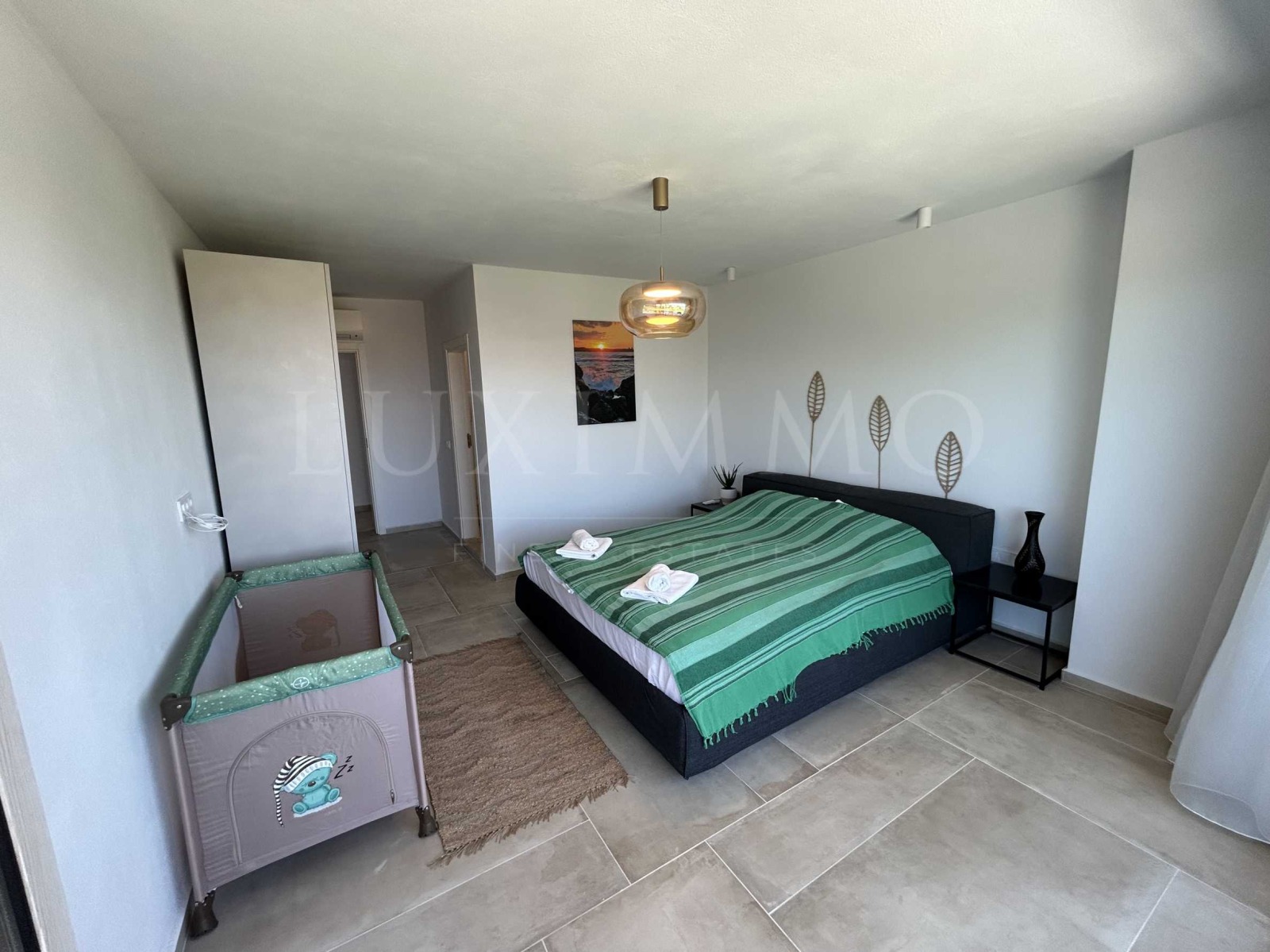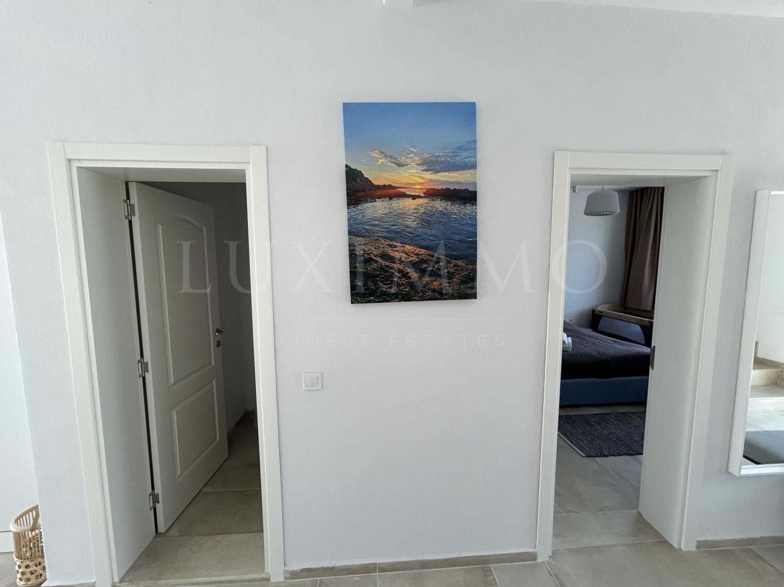втори етаж: 4 спални със самостоятелни бани, обща тераса към двете спални, с изглед към морето.