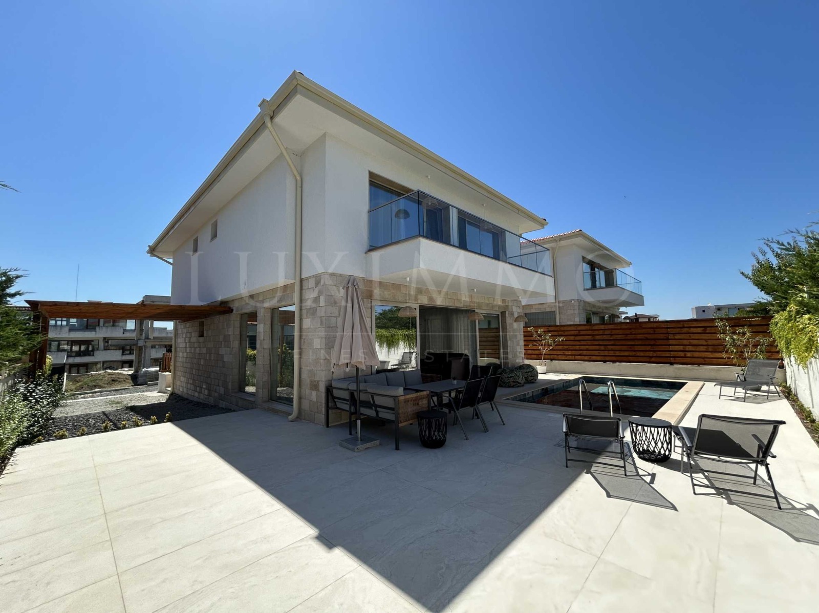Представяме нова, самостоятелна къща с басейн и гледка към морето, на спокойна локация на около 500 м от плажа, във вилната зона на с. Лозенец.