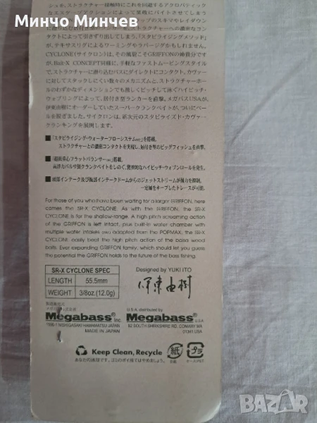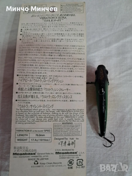 2. Megabass VIBRATION- X ULTRA "SILENT" LINGTH- 76,O mm. WEIGHT 17.4 g. използван цена 30,0 лв.