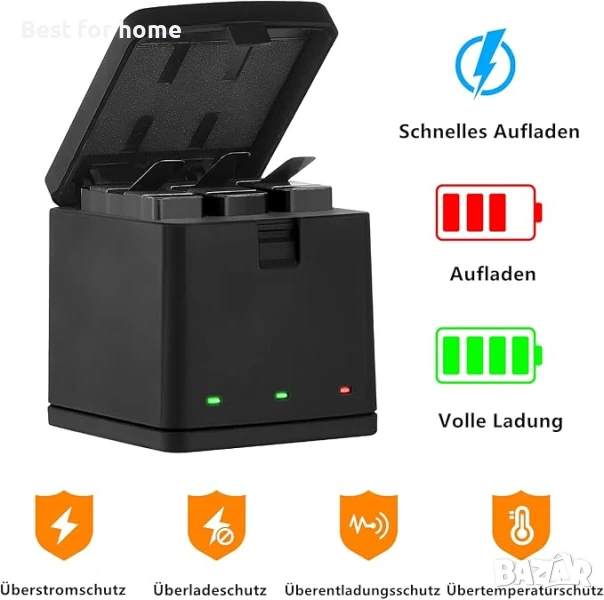 3-канално зарядно устройство: това зарядно устройство и кутия за зареждане могат да зареждат до 3 батерии едновременно. 3 LED индикатора: съответстват на 3 слота поотделно. Зарядното устройство с капак е лесно за носене и предпазва батерията ви.