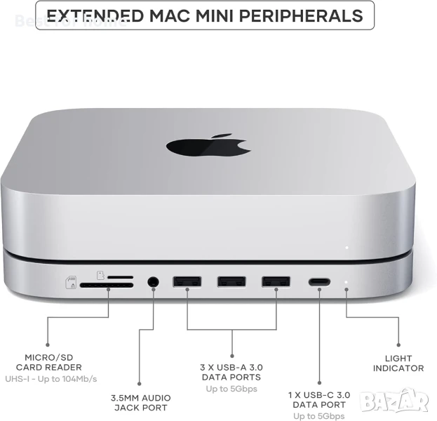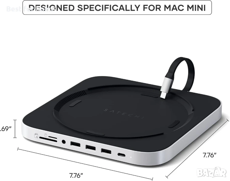 SATECHI Mac Mini Хъб и стойка Type-C с корпус за SSD