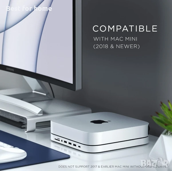 Съвместим с - M2/M2 Pro Mac Mini, M1 Mac Mini, Mac Studio, 2020 Mac Mini. Не се предлага в цвят Space Gray. Не поддържа модели Mac Mini от 2018 г. или по-стари. Забележка: Вътрешният SSD корпус е подходящ само за M.2 SATA SSD устройства (не са включени), не работи с NVME SSD. USB-A портовете не поддържат CD четци, включително Apple SuperDrive, и не зареждат iPad-и. Препоръчваме да свързвате само едно устройство, захранвано от шината, едновременно.