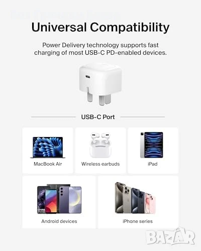Подходящо за iPhone 15, Samsung Galaxy, iPad, AirPods и други устройства