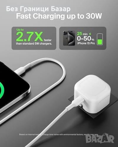 30W USB-C Power Delivery – бързо зареждане до 50% за 25 минути