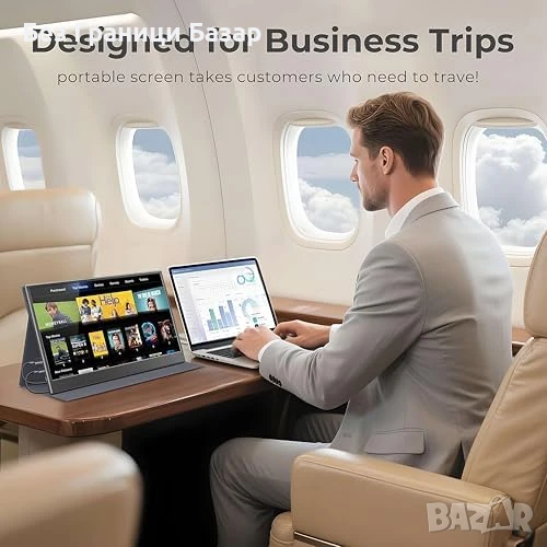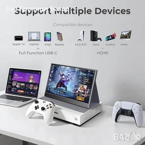 Нов 15.6'' Преносим IPS Монитор USB-C HDMI за Лаптоп PS5 Xbox с калъф