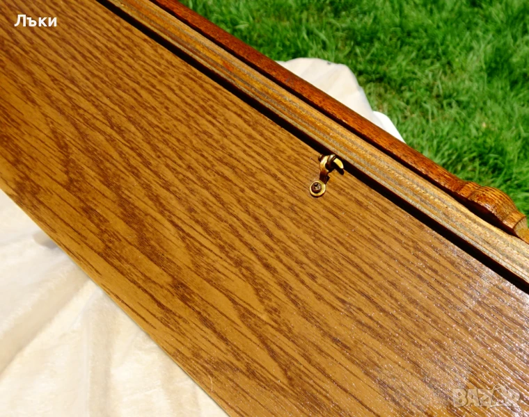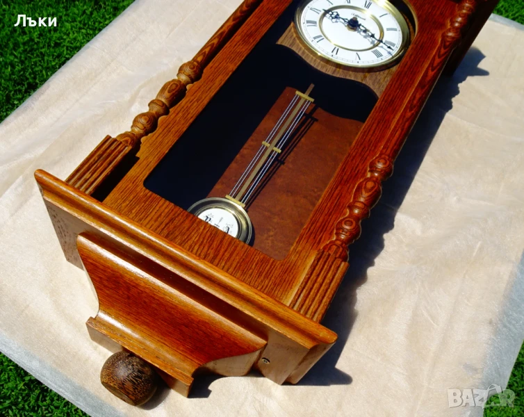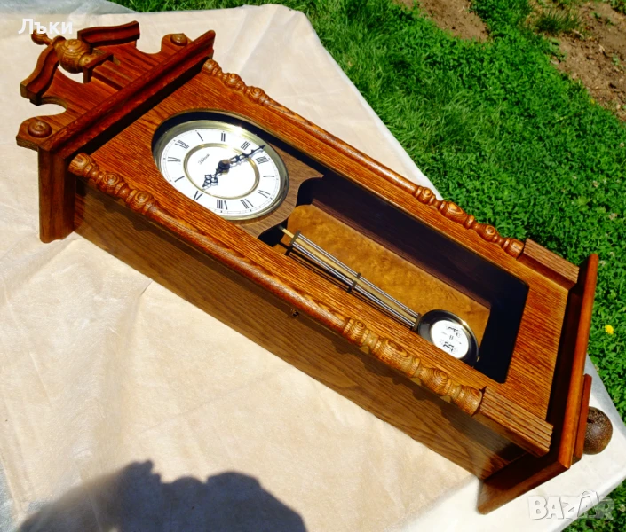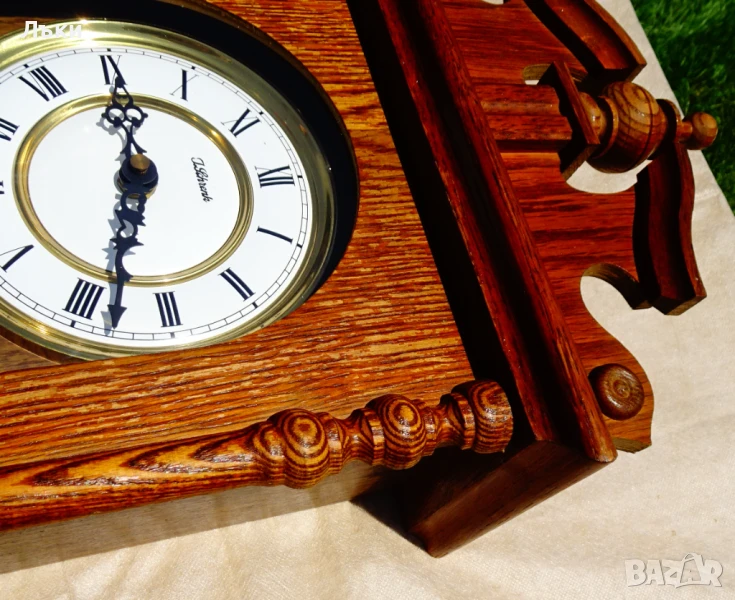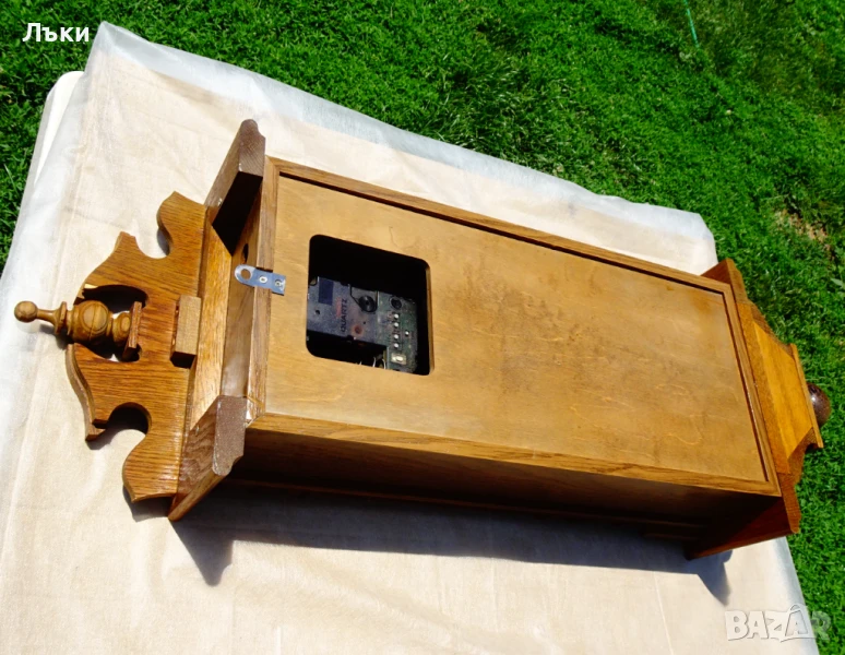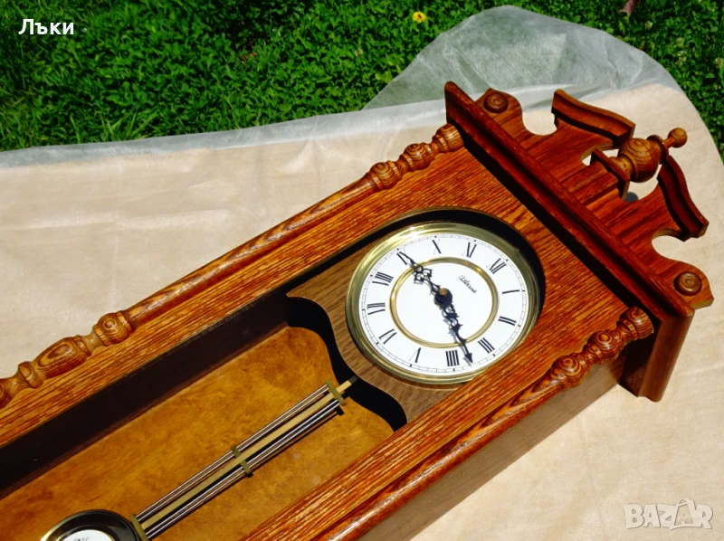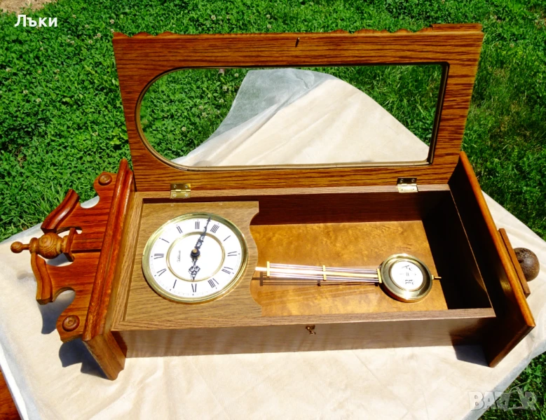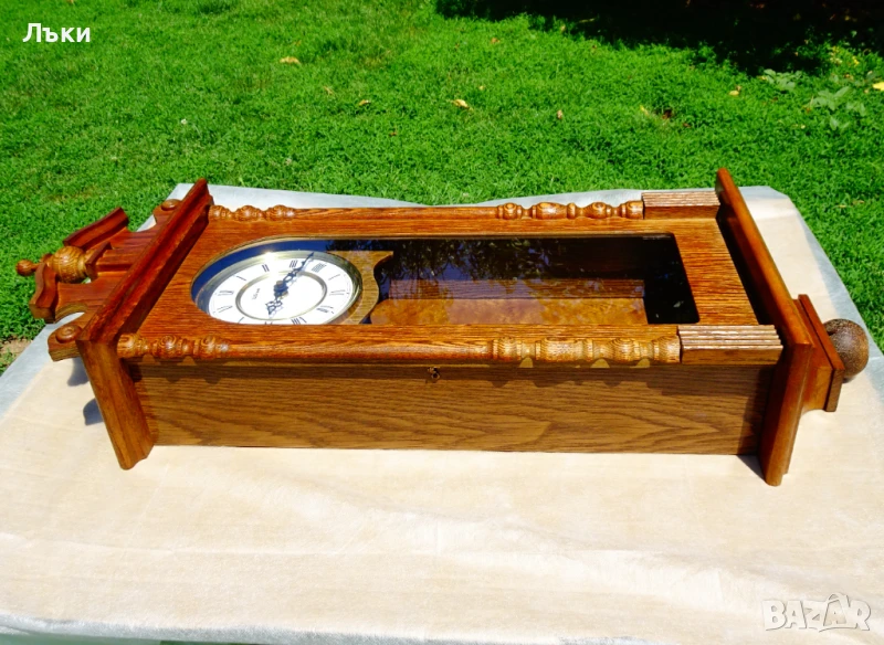 естествено дърво немски дъб – много красива дърворезба и шарки!Стъклото е перфектно.Циферблата