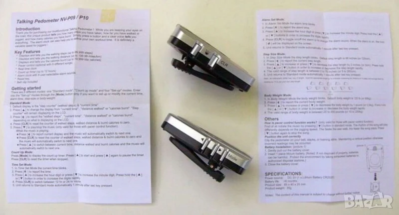 Многофункционален уред с бутон за гласова активация за спорт, туризъм, фитнес, ежедневно ходене по здравословни причини и др., желан подарък. При употреба се поставя във вертикално положение на колан, раница или облеклото посредством интегрираната щипка клипс.