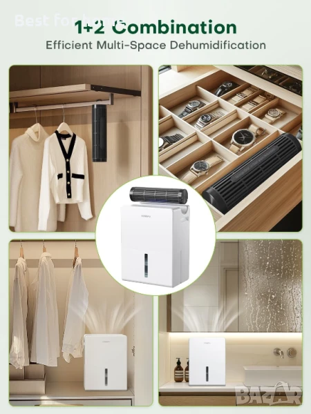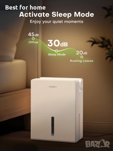 Допълнителни устройства за употреба в няколко стаи: Влагоабсорбаторът поддържа режим на заспиване с едно докосване, който изключва осветлението и поддържа нивата на шум под 30dB. Настройте таймера на 6, 12 или 24 часа за автоматично изключване, удобно, когато сте навън. 2 персонализирани скорости на вентилатора: стандартна за редовна употреба и силна за значително отстраняване на влага.