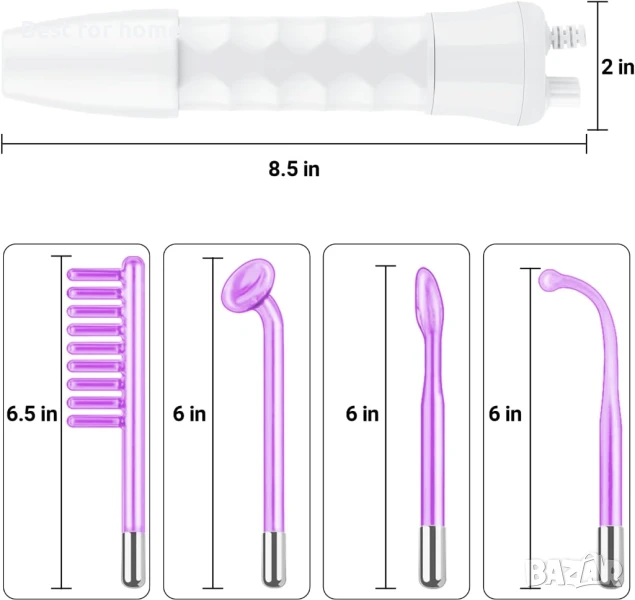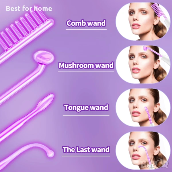【За Вашата внимателна подготовка】- Високочестотната четка за лице се предлага с 4 бр. аргонови високочестотни тръби в различни форми за различни области на лицето. Гъбовидната тръба е подходяща за широки зони за намаляване на бръчките като бузите, челото и челюстта. Тръбата за език е подходяща за акне и несъвършенства на кожата, намалявайки тяхната видимост. Извитата тръба е подходяща за чувствителни зони като тъмни кръгове под очите, носа или устните. Гребенът е за увеличаване на растежа на космите.