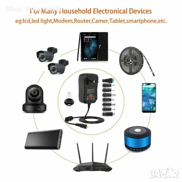 Подходящ е за повечето AC/DC домакински уреди, като таблети, електронни везни, рутери, високоговорители, LED ленти, CCTV камери, USB акумулаторни камери, телевизионни кутии, безжични приемници, принтери, игрови конзоли, продукти за сигурност, цифрови продукти, GPS, CD плейъри, смартфони и други 5V USB устройства.