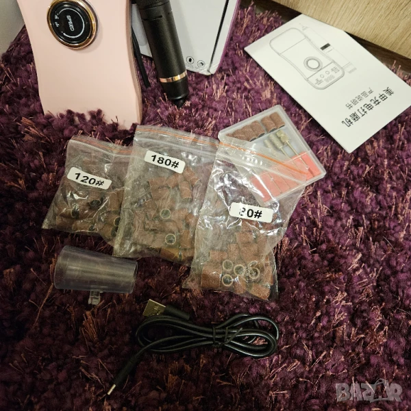 Нова пила на батерия, за сваляне на геллак. Има кабелче за зареждане със зарядно за телефон.