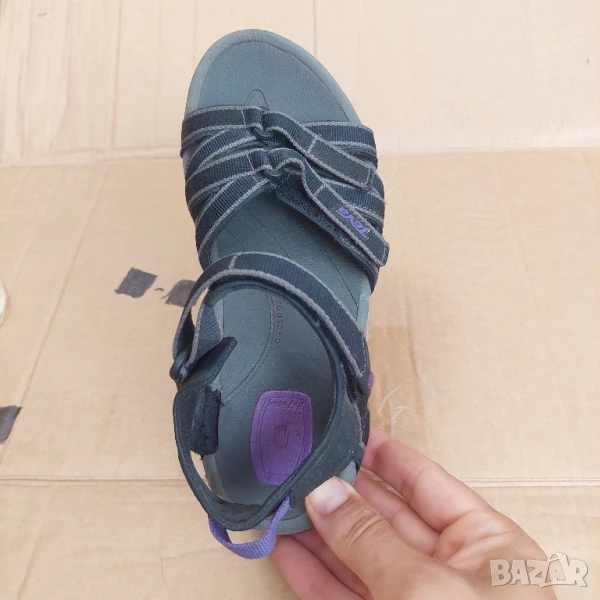 Модел за взискателни от Teva. Външната част на саята се състои от: Текстил - Tекстил. Вътре в обувките подплата: плат. Вътре в обувките има стелки: материал. Подметка подходяща за мокри и хлъзгави повърхности: висококачествен материал. Оригинално предложение за тези, които ценят удобството.