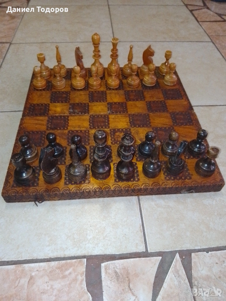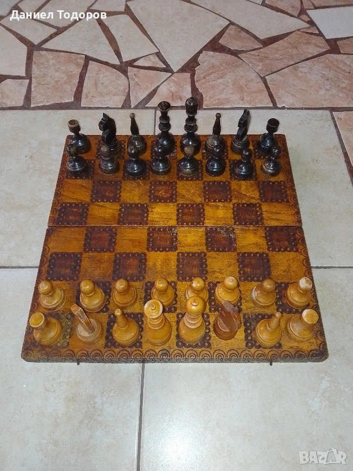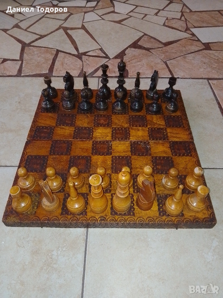 Стар дървен шах .Размери - 34 х 34см. . → Обява 50749275