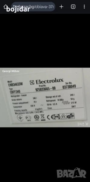 Хладилник с фризер 323Л - ELECTROLUX ENB34633W NO FROST → Обява 50749340