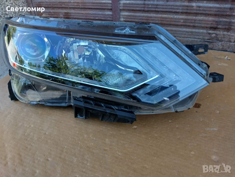 Оригинален десен фар за Nissan Qashqai J11. Забележка, има 2 счупени държача, които се виждат на снимката.