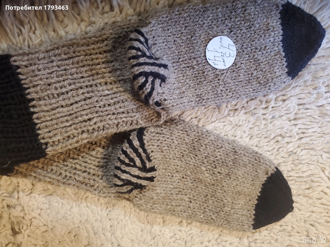 Ръчно плетени мъжки чорапи от вълна' размер 43 → Обява 50749777