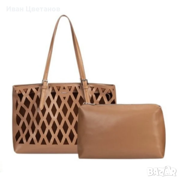 Комплект: Външна чанта с отворен решетъчен дизайн + вътрешна чанта с цип;