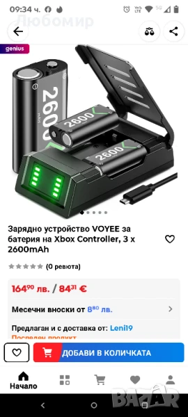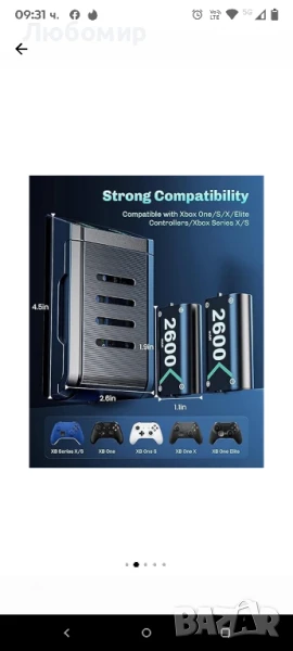 Зарядно устройство VOYEE за батерии Xbox,3x2600mAh акумулаторен пакет