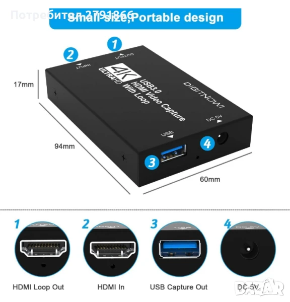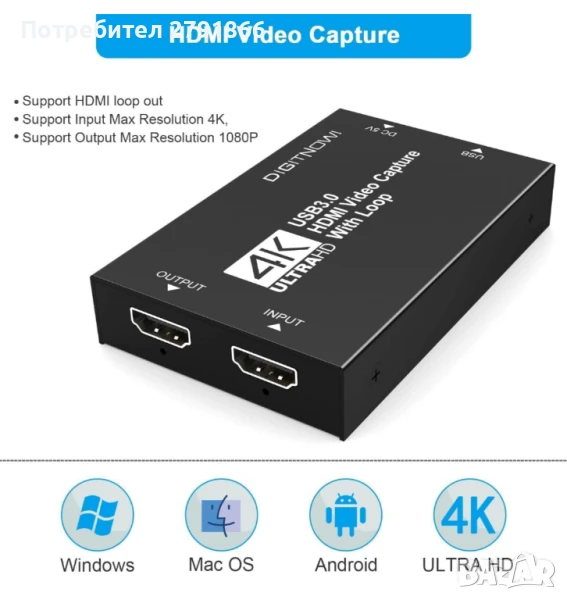 - Plug and play: лесен за употреба. Не се изисква драйвер, външно захранване, компактен и преносим. Просто свържете вашите HDMI устройства към вашия компютър или Mac за лесно записване. Идеален е за предавания на живо, конферентни зали, видеозапис и др.