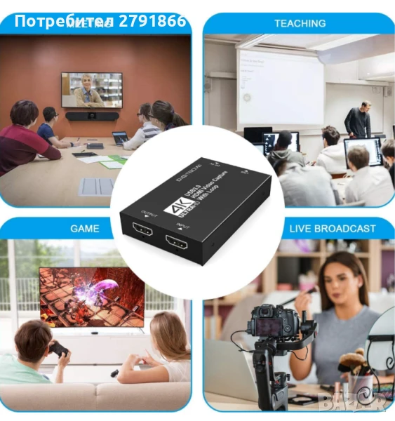 4K със записваща карта с 30FPS: поддържа всички стандартни HD видео протоколи с резолюция под 4K. Изходна резолюция до 4K/30Hz, резолюция на запис до 1080P / 60Hz. Много подходяща за стрийминг на игри на живо.