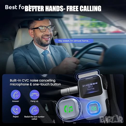 【Всичко на дисплея】 Bluetooth адаптерът LENCENT aux за кола, оборудван с LCD дисплей, който ясно показва цялата информация, като състояние на Bluetooth връзката, батерия, сила на звука и имена на свързани устройства и др. Удобно е да получавате тези данни, докато шофирате.