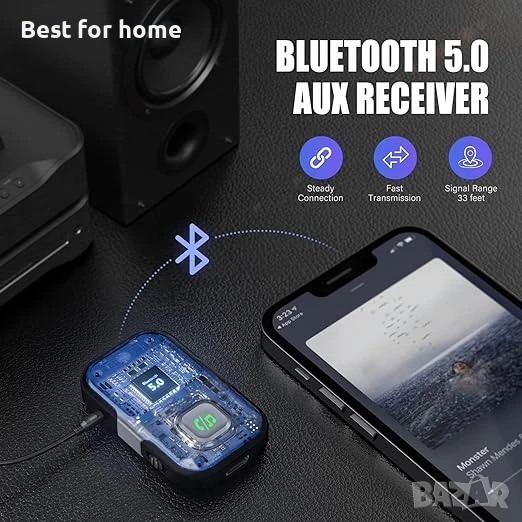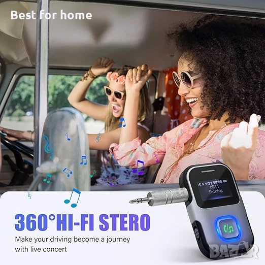 【Bluetooth 5.0 за стабилна връзка】Bluetooth приемникът е оборудван с Bluetooth 5.0 чип, който осигурява стабилна връзка и бързо предаване на сигнала. Може да се сдвои с 2 устройства едновременно, така че няма да пропуснете никакви обаждания, докато слушате музика. След сдвояване, автомобилният приемник автоматично ще се свърже отново с последните ви сдвоени Bluetooth устройства, с обхват до 10 метра.