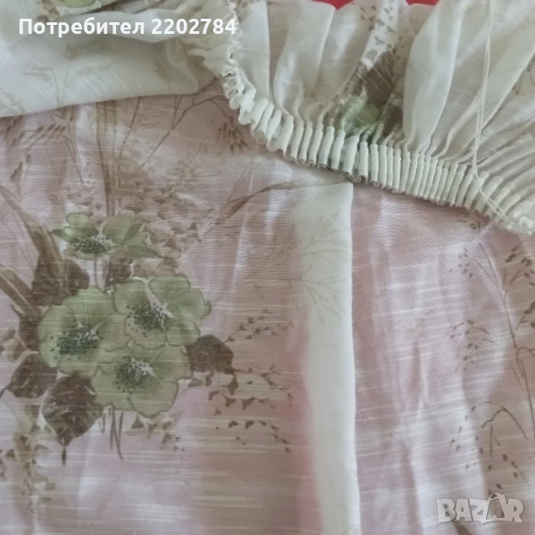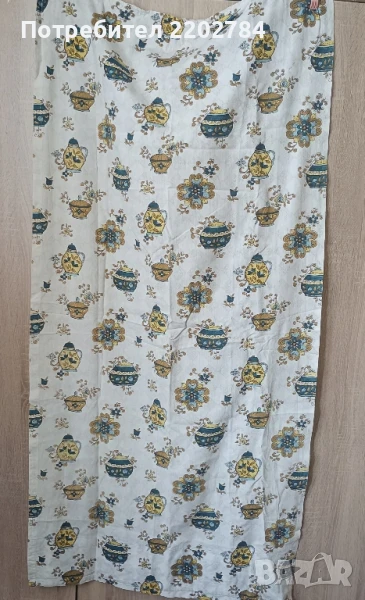 Четвъртия комплект от два броя е употребяван,но е без всякакви забележки.Памук с много красиви щампи.С перделик без копчета.Без забележки.Размер на едното: ширина 67см (другото е с 5см по широко) дължина 150см.
