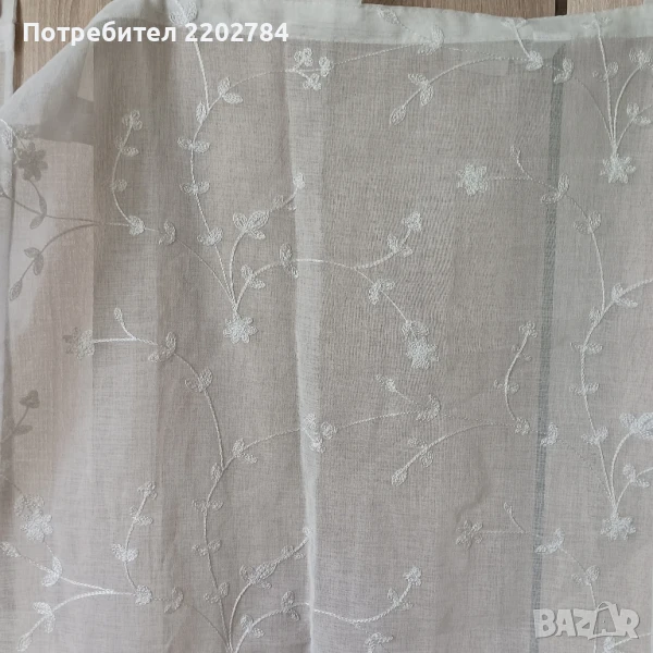 Първите са два броя,нови,с прозрачност и с много красиви бели бродерии.С уши за нанизване.Размер на едното: ширина 60см, дължина 120см.Без забележки.